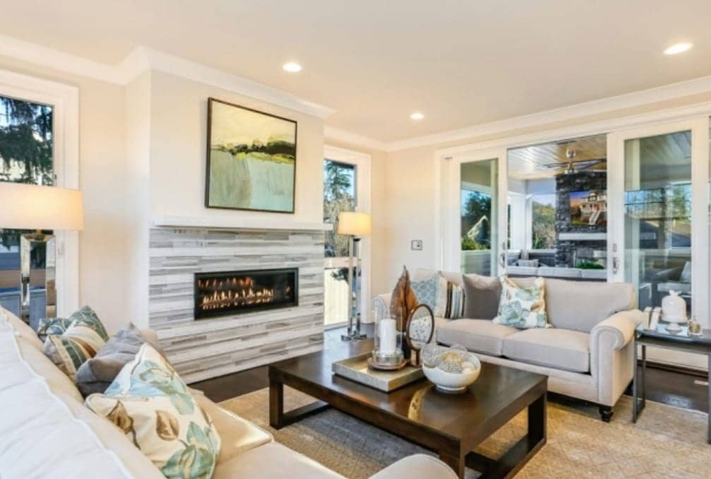 We have only been in our home about a year and have recently updated our fireplace. We are very happy with the updated look and now get to decorate the room! We have used a lot furniture/decor that we already had and it’s definitely coming together. BUT it seems like something is missing or off. I am happy to rearrange decor, art, furniture and reconsider what is already there too. We’ve thought of changing the table’s light fixture, adding drapes, or even painting the fireplace surround black but just aren’t sure. Can you give me suggestions on what your next steps would be and how to bring this room to the next level?