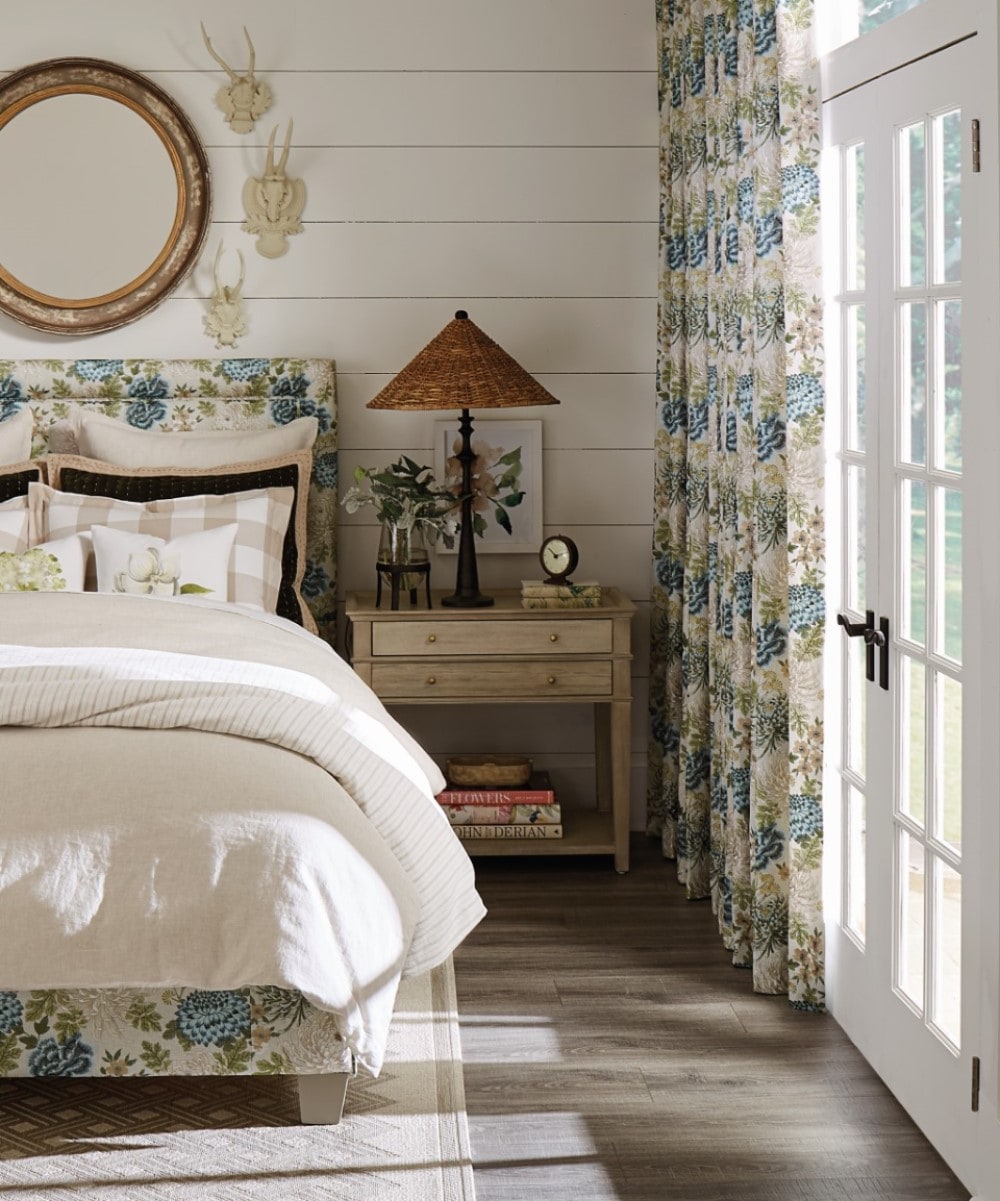 If you want a softer, airier look, coordinate your headboard, bedding, and decor to your window panels. Add in some playful bedding combinations, art, and a few pops of color here and there, and your space is ready to go.