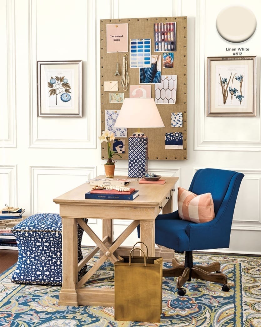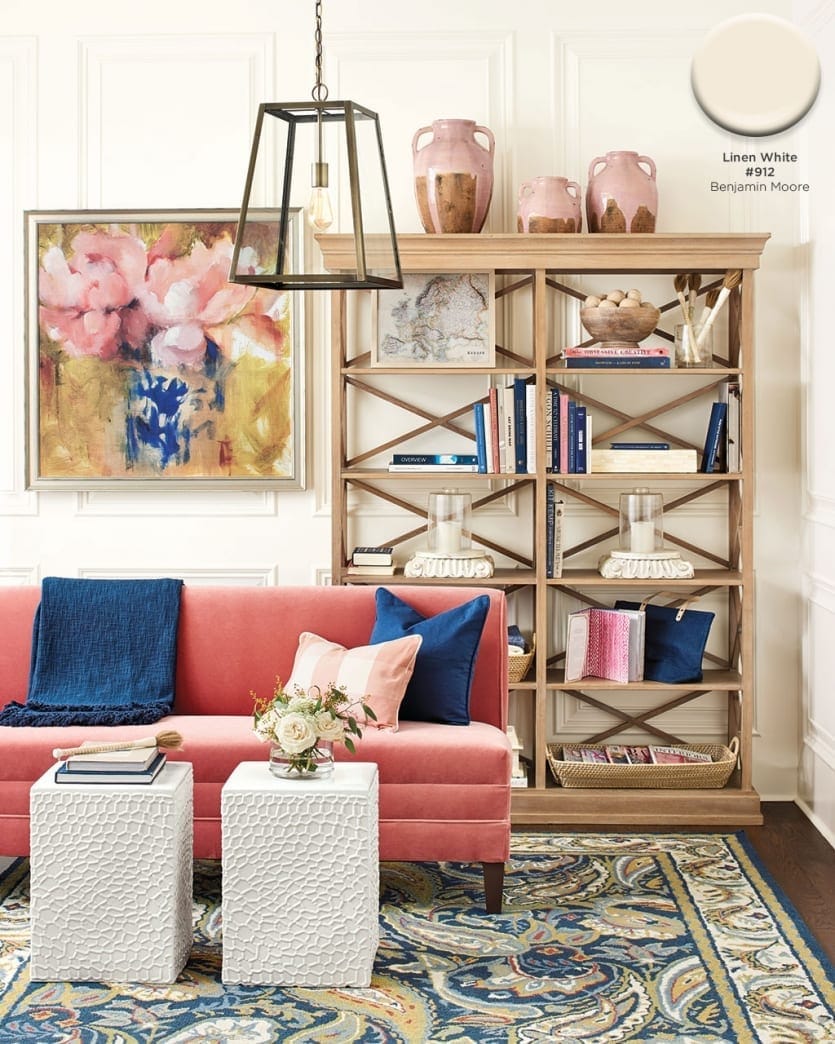 Of course not every room needs a bold wall color. Sometimes you need something more simple. Benjamin Moore’s Linen White has just the teeniest touch of warmth, giving every room the feel that it’s glowing with sunshine.