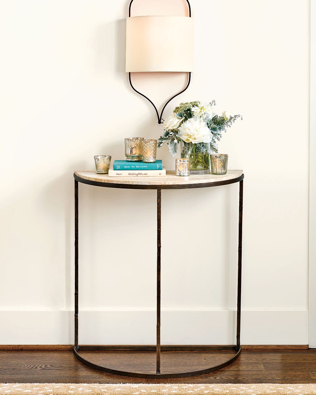 This is another piece I’m buying for myself. I live in a 1920’s bungalow, and I don’t have an entry hall. You walk straight into my living room, and I have a small table when you come in for keys and mail, but it’s never really fit the space. This little demilune is perfect and an answer to my prayers. I love the sleek silhouette and marble top.