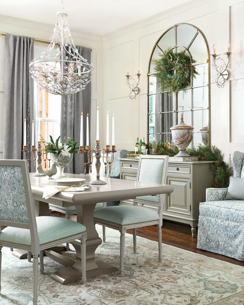 But there’s also a place for a more subdued palette that blends more with your year round decor. We tried to weave some examples of that into our catalog this season. We wanted to show how you can layer in a holiday vibe without screaming Christmas. Mercury glass is one of our favorites ways to do that. It has a gorgeous texture and bounces light around the space, perfect when paired with candlelight or lights from your tree. Another option is to take greenery, and use it in untraditional ways. Swag it over a mirror in your dining room. I love to tuck a boxwood garland and glittering ornaments into my dining room chandelier like jewelry. Then, every evening when my family is eating dinner, there are extra holiday touches around to make this busy time feel special.