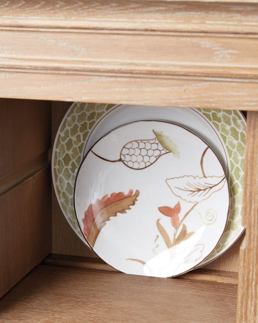 Obviously the dining room is a no brainer for the Beckett Cabinet. Each shelf has a plate groove so you can easily display china and dinnerware. We love letting an heirloom or special china pattern inspire the entire dining room.