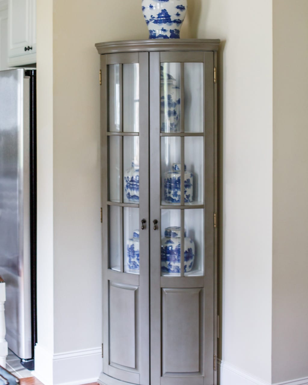 RC: Since this home has limited space (1400 square feet total), the size and proportion were the guiding factors in our selections. Because our client wanted that “Cape Cod” look, we looked for classic details on each piece, blended with a fresh color palette. We loved the Felicity Coffee Table because it helped the smallish living room look open, and the Chilton Corner cabinet was perfect to house a collection of blue and white porcelain.