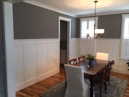 Love your podcast! We just moved into a new house and our dining room has wonderful, high wainscoting but I have no idea how to add art on the walls in here. Our house has craftsman mouldings throughout, and I’ve read that the top of the wainscoting in traditional craftsman cottages was used as a plate rail. That said, I’ve considered leaning some of my larger white ironstone platters along the ledge, but have no idea how to secure them to the wall. I’m also thinking that may be too monochromatic, and patterned plates feel a bit too granny for me. I’ve seen other people add framed art above the rail and it just seems out of place because it’s far above the average person’s line of sight. I also can’t do a mirror because the dining room is beside the entry where we have a large mirror already. Please help!