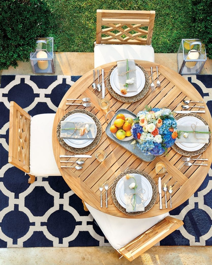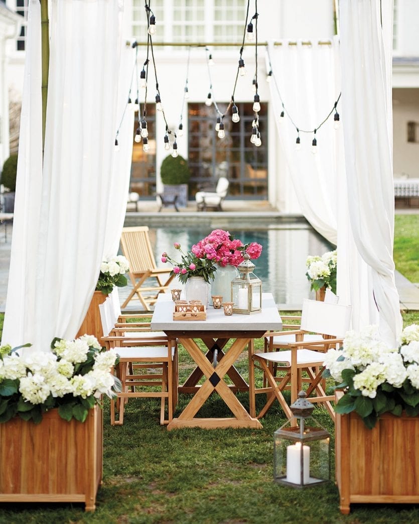One of our must-haves for any dream outdoor space is a stylish place to entertain and host a dinner party. Nothing says summer like a big green salad and something hot off the grill. Invite guests over for a casual, impromptu evening on your patio or porch, and plan a super chic meal and go all out with place settings and flowers.