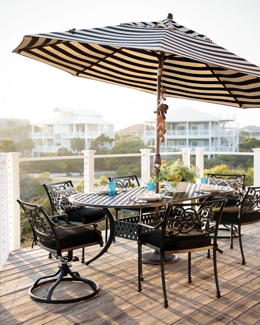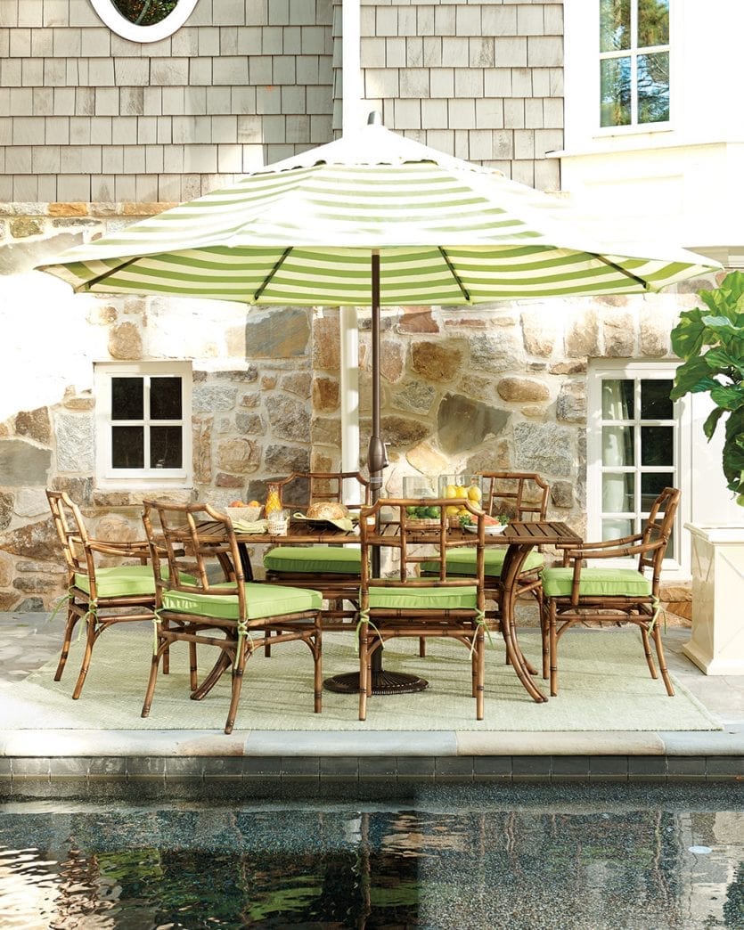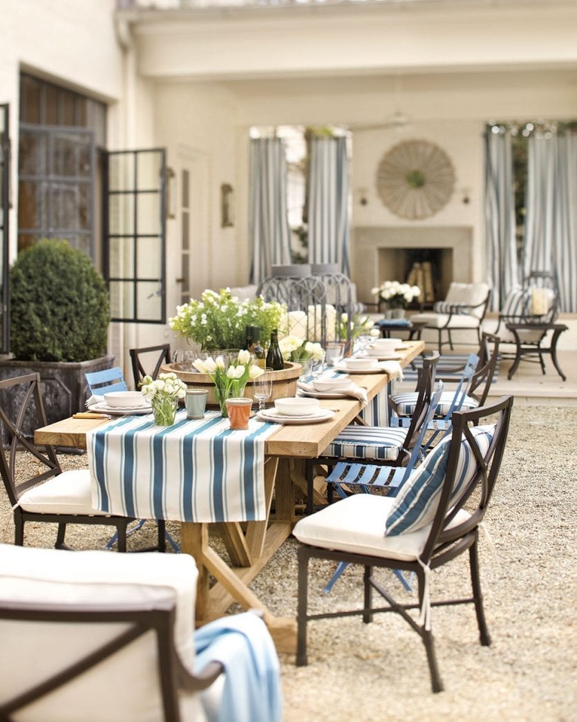 We always look to acclaimed designer Suzanne Kasler for the ultimate style tips, so you know we’re taking notes on how she furnishes her own outdoor spaces. In both of these outdoor rooms, she used her classic Directoire collection mixed with plenty of stripes.
