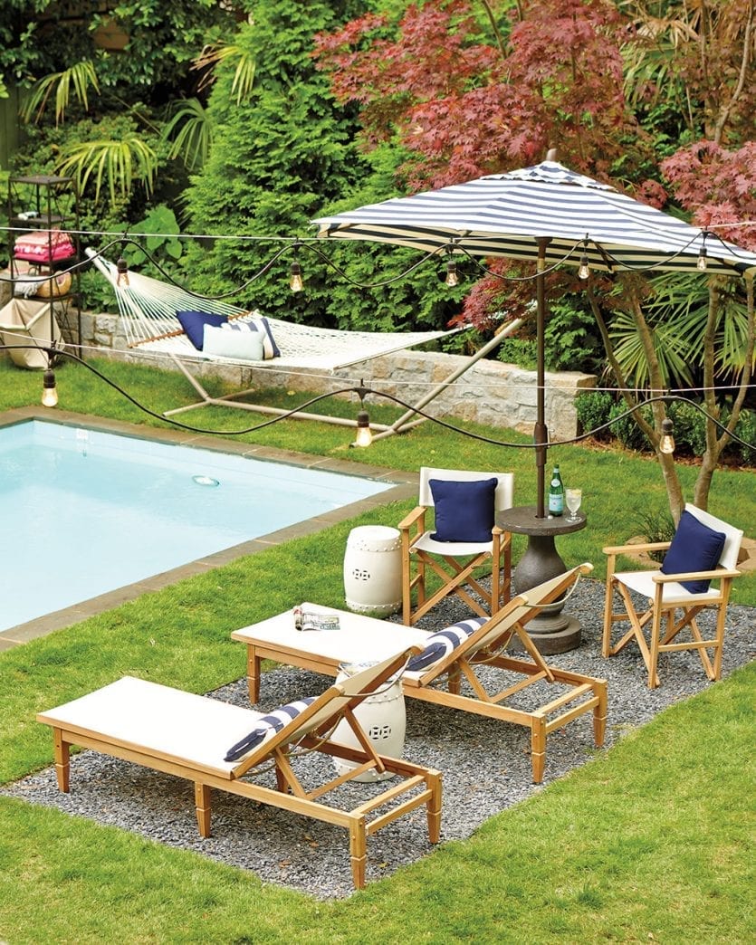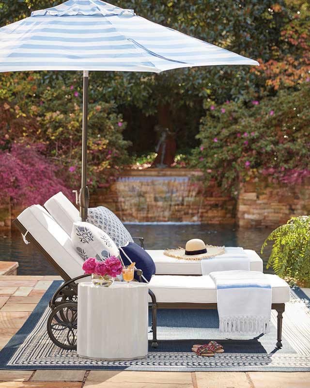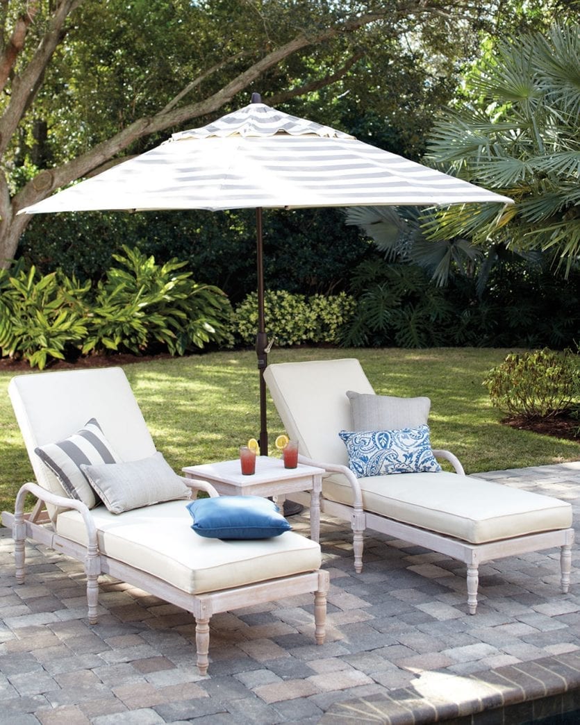 If you’ve got a pool, a pair of chaise lounges should top your must-have list. They provide a spot to enjoy the sun and for watching family or guests swim. Add an umbrella and a side table, and you’re ready to enjoy a cocktail al fresco.