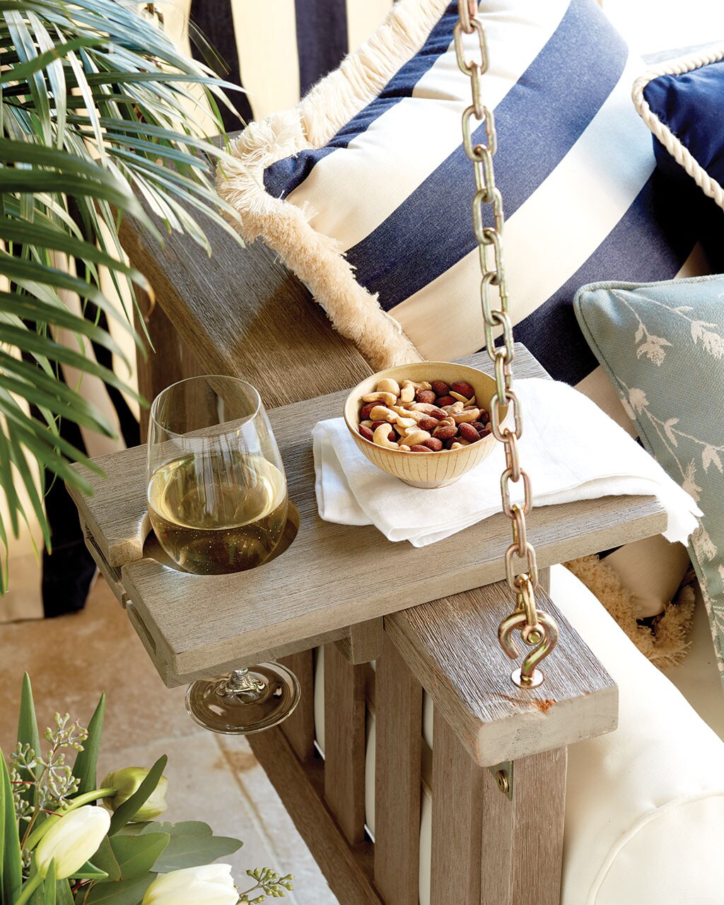 There’s no more iconic outdoor perch than the perfect Southern porch swing. We’ve given ours the ultimate comfort with a deep foam cushion so big, you’re guaranteed to take a nap. If you’d rather swing during cocktail our, we’ve got a perfect side table that holds your wine so you don’t miss a sip.