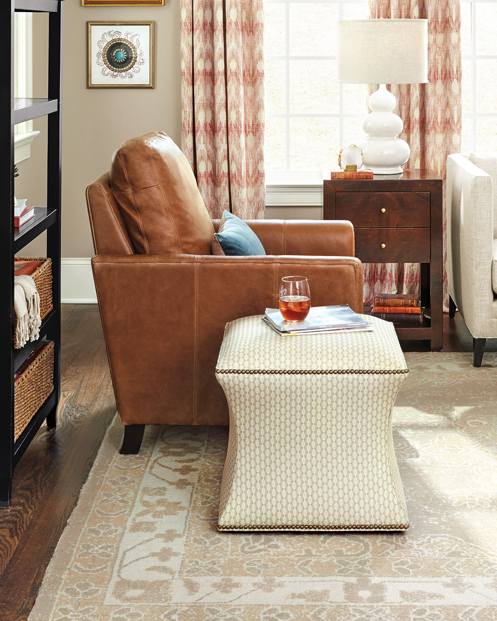 We also love the idea of creating your own coffee table with different pieces for a less traditional approach. Ottomans make great coffee tables, especially if they provide hidden storage underneath. To get the look, simply add a tray on top as your resting space. Looking for a more budget friendly option? Use poufs or cubes in place of an ottoman. For this look, push two cubes or poufs together and top them with a tray. These are ideal if you like to entertain because you can always remove the tray and provide extra seating.