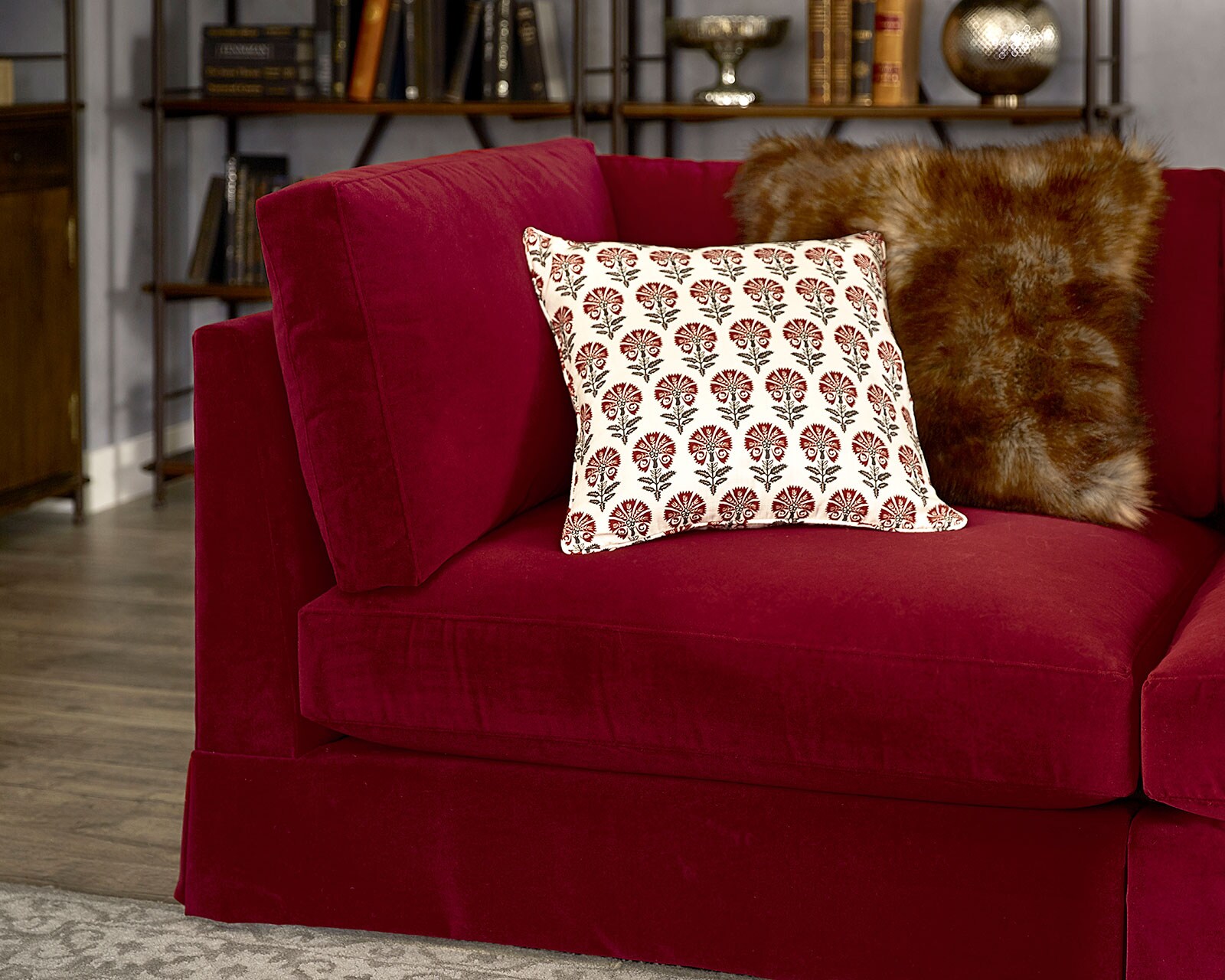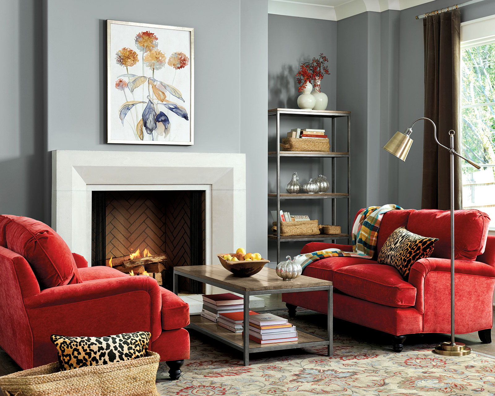 In the fall we are always vibe-ing on jewel tones, but we love incorporating velvet too! Why not combine them both? Ruby-colored velvet is the perfect way to bring a large swath of color to family room, and in terms of curl up comfort, furniture pieces upholstered in velvet are oh-so inviting.
