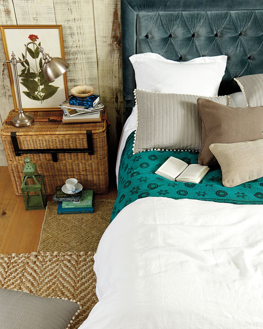 Or mix bedding pieces — a crisp percale sheet with a striped cotton duvet cover and a slubby linen quilt. Layer the three together to up a comfy factor.