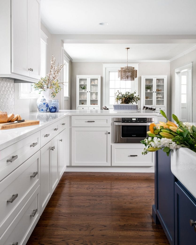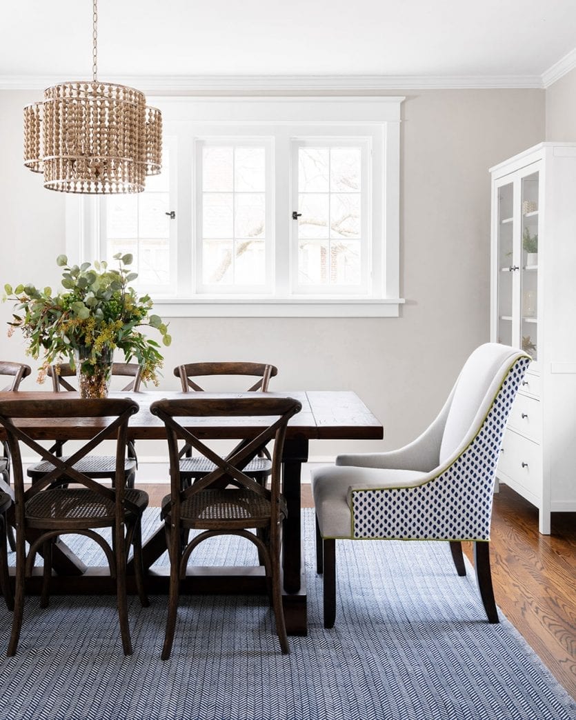 As to my question, I was listening the other day and heard the designer talking about breaking up the dining set. My dining room has a matching set I found at an antique store, so I have no emotional connection to it, but I do love it. The top is a little damaged, so I tend to keep a tablecloth on it. So should I paint the chairs? And if so, what color? I am not afraid of color, and added pictures of the surrounding rooms so you can see the colors woven through. I’m also curious about the lamps in this room. Should I do a set of blue and white ginger jar lamps on the buffet? Do the black shades get lost? Just feeling like the room could use a refresh, and curious about your ideas.