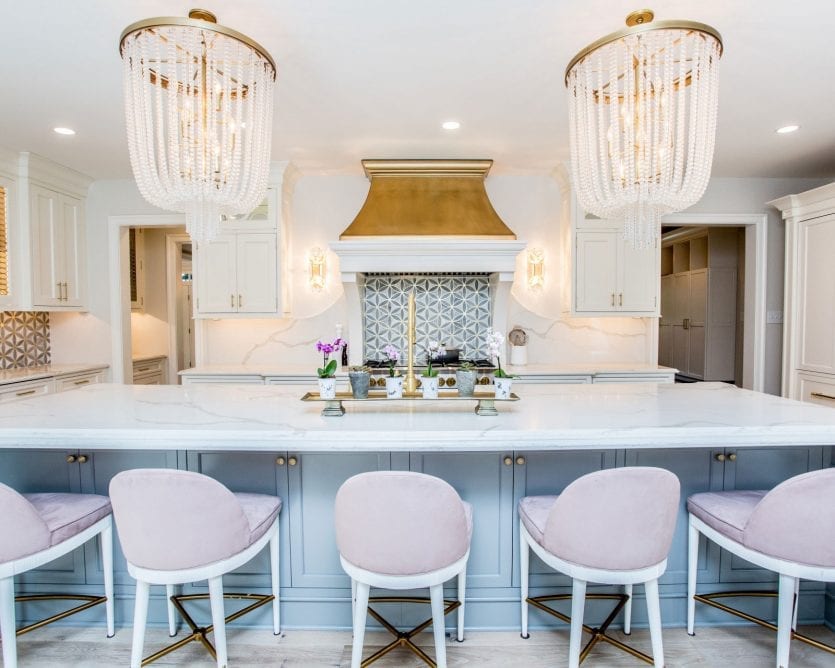 - How we can glam up a kitchen using seating, hardware, lighting, and certain backsplashes.