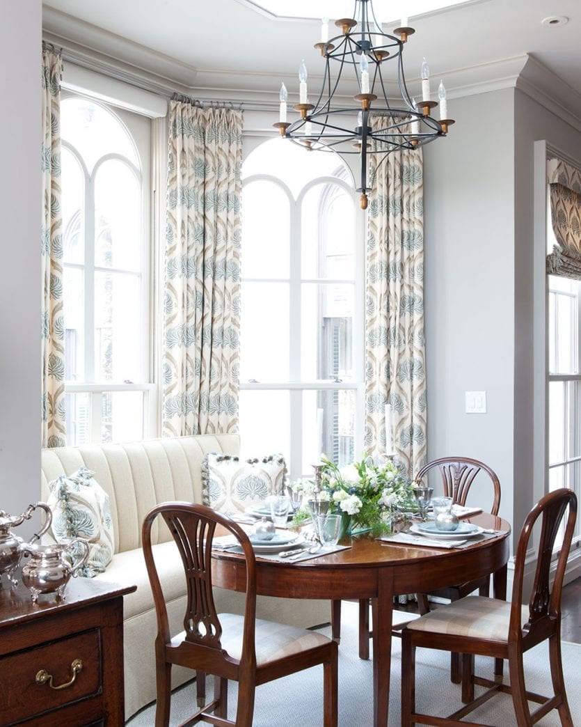 One of Susan’s mottos is “there is no problem that a good curtain can’t fix”, but here it can be dramatic and make it feel like a pavillion. Her advice is a very long curtain rod with two panels on either side all the way down the floor. Susan also throws out that two curtain rods with two panels on either side and treating them on individual windows may work really well too. We also throw in the idea of Roman shades, to help add softness.
