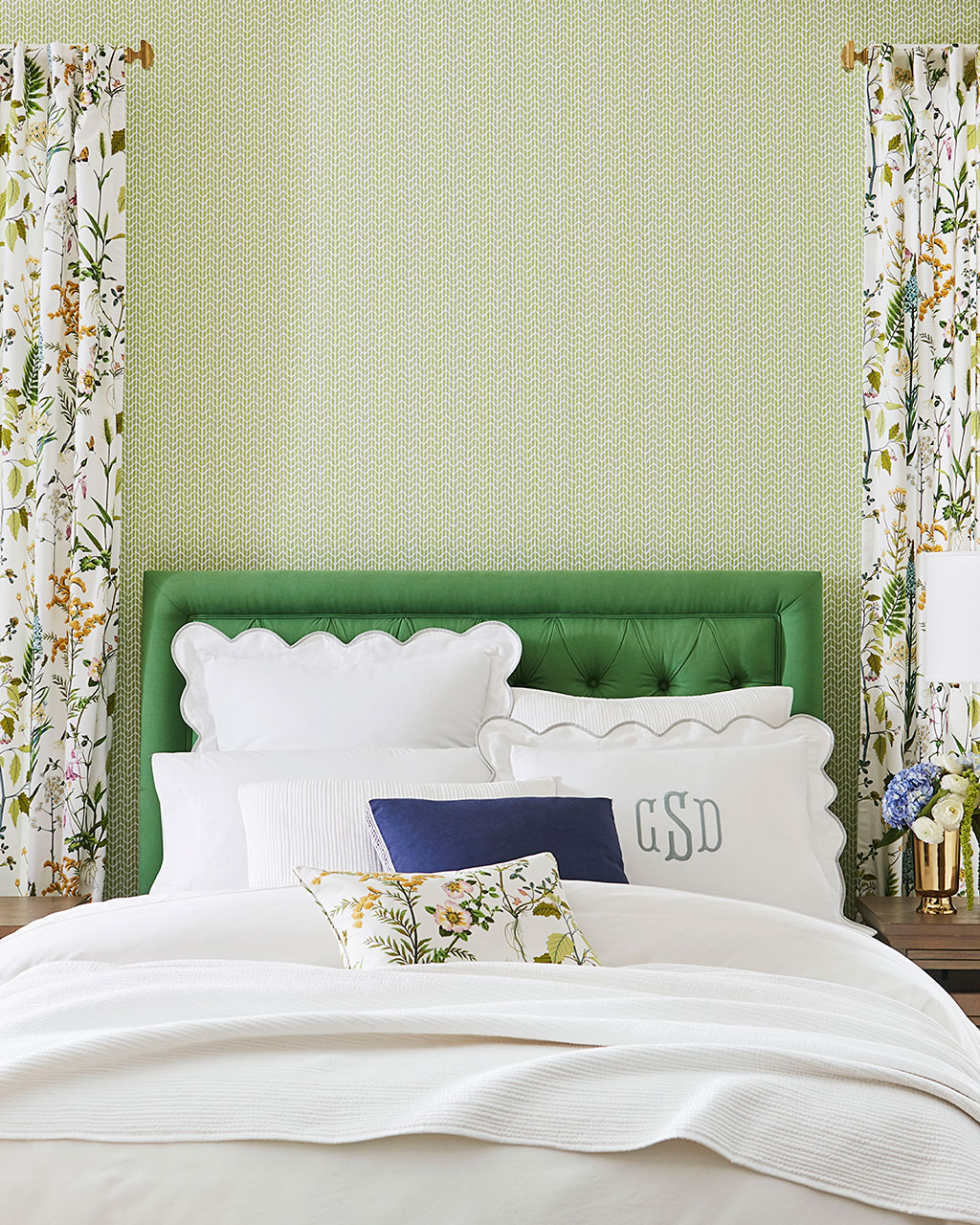 To give your bedding a refresh this year, try mixing and matching different bedding collections. We tend to take a solid quilt, like our Audree Pom Pom Quilted Bedding, and mix it with a pattern, like our Jardin Toile Bedding. Throw a few pillows in coordinating colors on top and you’ll feel like you have a brand new room.