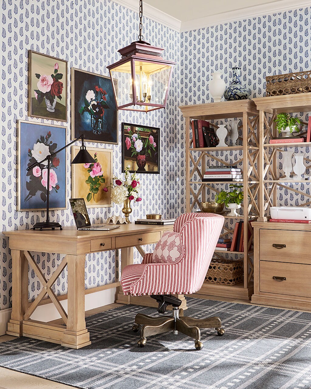 Looking for pattern and color? Our Tiny Leaf Wallpaper is a beautiful option to wake up your room, especially paired with a solid and neutral piece like our Crawford Shiplap Entry Cabinet. It’s just enough pattern to give the room excitement without being too distracting.
