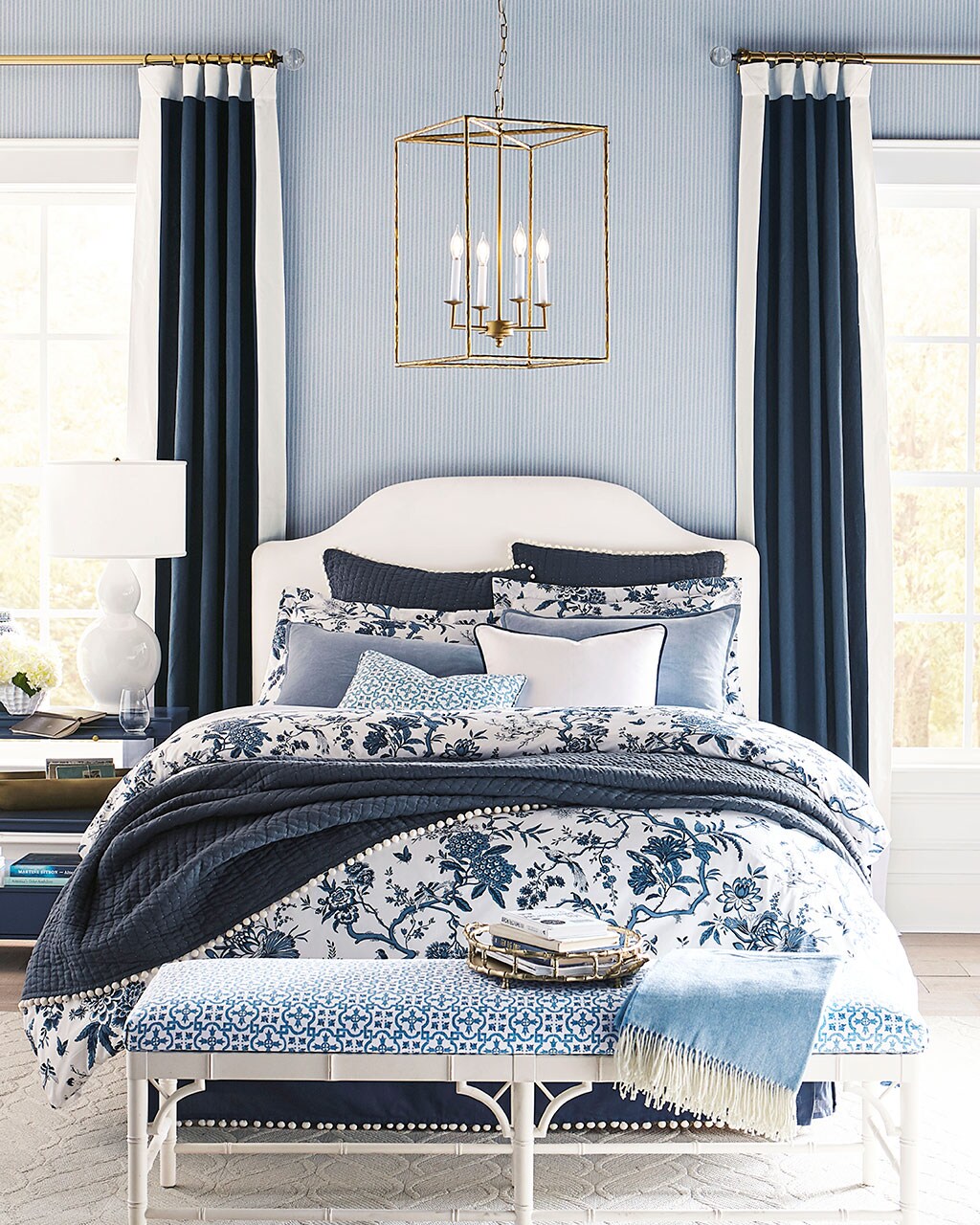 You know we love stripes — rugs, fabrics, art, and even lampshades. We dig them, so it should come as no surprise that we love a wallpaper too! Stripes work well in so many different rooms because they’re bold but very clean. The linear pattern makes rooms feel larger, and they’re simple enough not to compete with patterned upholstery or rugs. Here we used our Ticking Stripe Wallpaper to add an extra pattern to the mix.