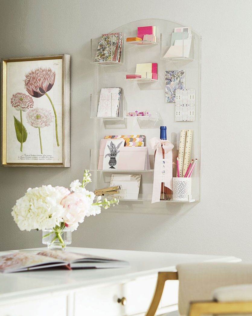 Vertical space is your friend. Consider using shelves, cork boards, and other wall organization tools to make your small work space more efficient.
