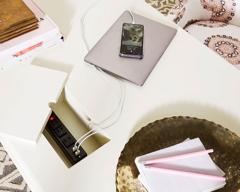 Not only are cords an eyesore, they can be dangerous if they’re in traffic areas or exposed to small kids. Most of our desks have cord management to keep everything neat and tidy.