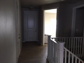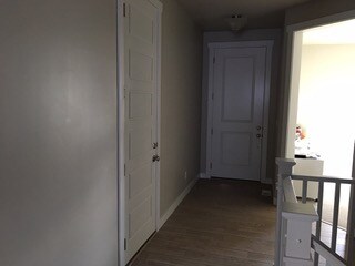 The most obvious answer to me was to put a window in the door, but this is not allowed by the HOA. Should I paint, wallpaper, what??? Also, what color should the ceiling be as well? The current paint color is a beige with maybe a touch of gray in it on the ceiling and walls. It is not a dark value in the light rooms, but in the entry it appears darker.