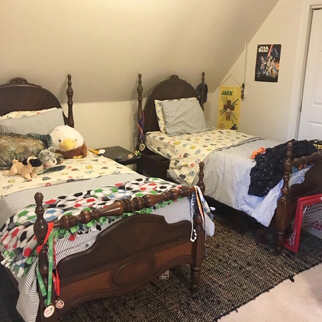 I LOVE your podcast. It’s my favorite source of inspiration and guidance as we work to renovate and decorate our 135+ year old brick Victorian home. While I feel like we are finally making some good progress in the main areas of the house, our boys’ room is stumping me. We have two sons and a daughter. The boys have shared a room since they were babies and they’ll continue to share a room for the foreseeable future. Adding a bedroom would take some serious interior construction and that is not anywhere close to our priority list right now with so many other spaces that are truly broken.