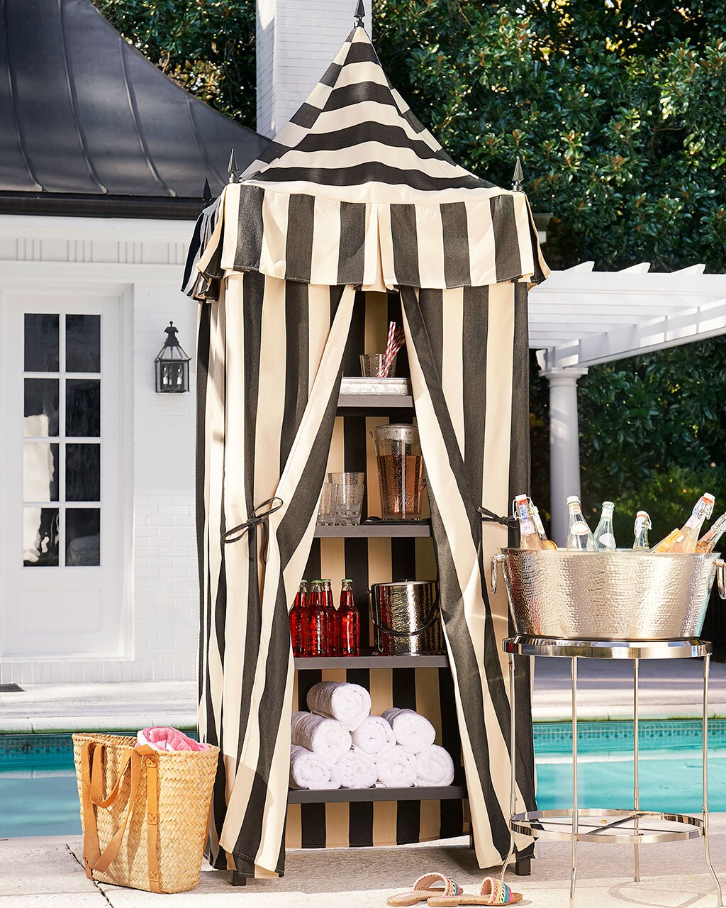 Who said outdoor storage couldn’t be stylish? Say goodbye to hidden storage and put your towels on display like a 5-star resort. Pool toys, towels, sunscreen, store it all. With the adjustable cabana cover, you’re able to protect what’s inside if your forecast calls for bad weather. Bonus – get your drink supplies ready because the cabana also doubles as an outdoor bar.