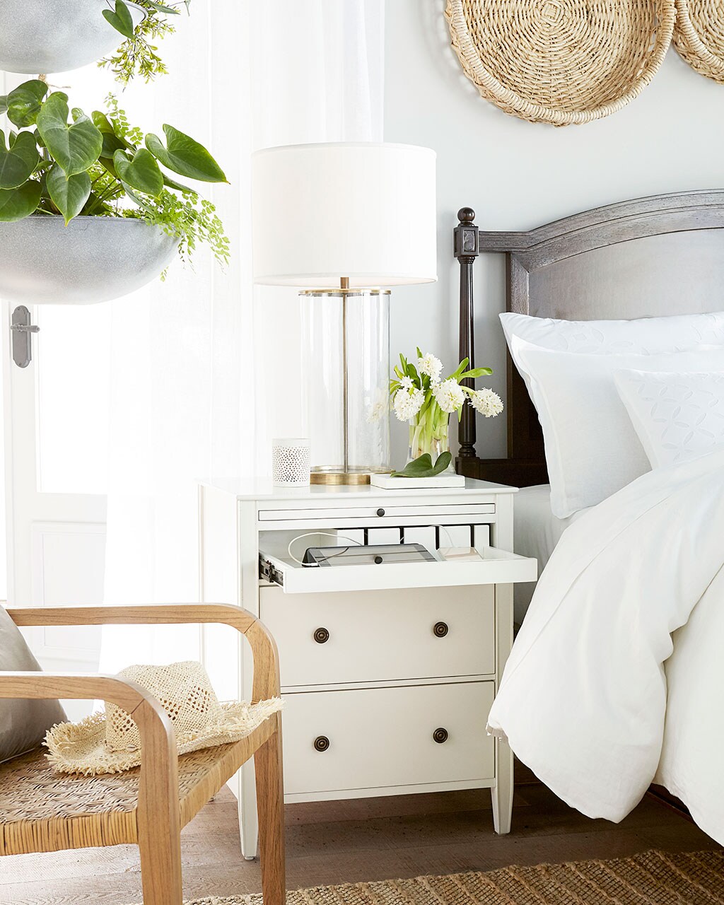 Hotel rooms are very thought out and aim to make your life easier during your stay. Convenience is at top of mind, and we think we should be incorporating these same ideas into our homes! With a charging nightstand, you can keep your space neat and organized with cords out of the way. Little touches like these are often what makes the biggest difference in a room.