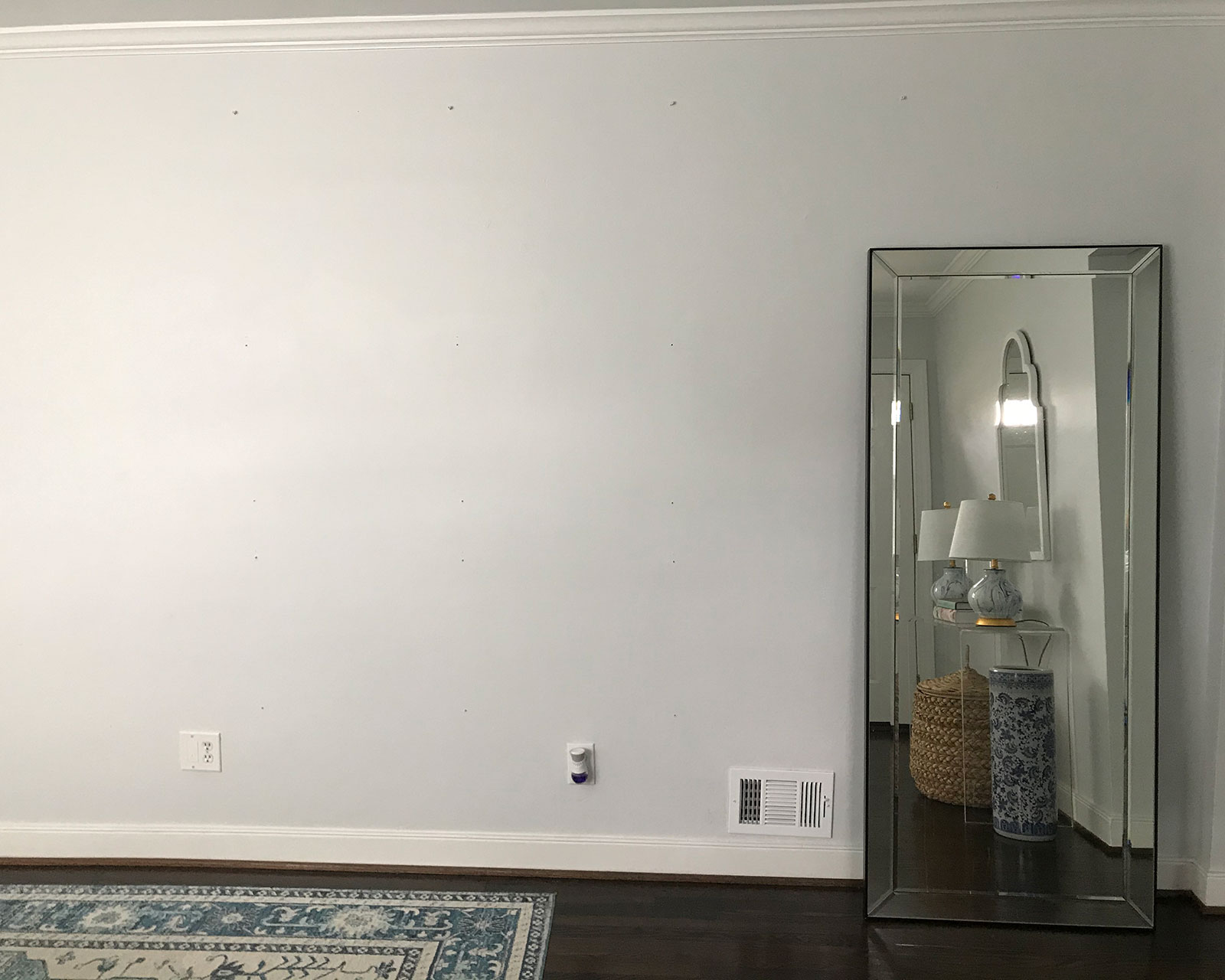 The floor mirror I’m thinking has to go into another room. Perhaps the office that’s to the right off the living room? As you can see, this girl is needing some help y’all.