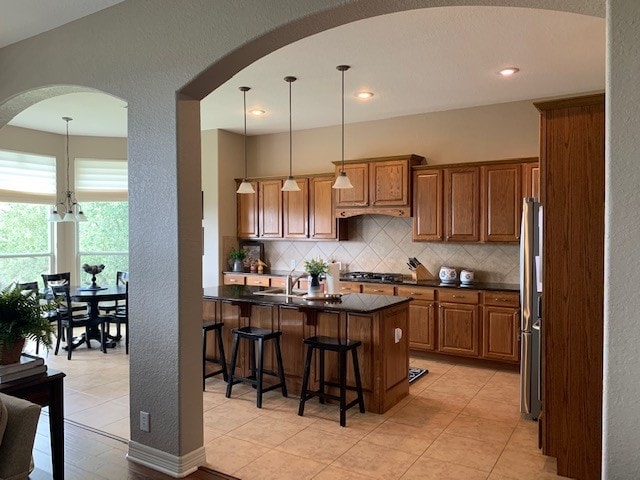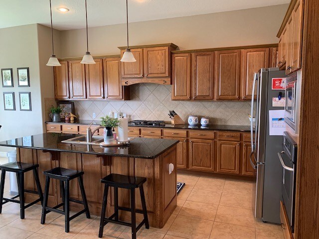 My decorating dilemma is my kitchen space and I’d love some feedback in regard to updating my kitchen. We moved into this house 3 years ago and I knew right away that I would want to change out the backsplash. I feel like the current backsplash mimics my large floor tile, except that it’s placed diagonally on my wall. Boring!