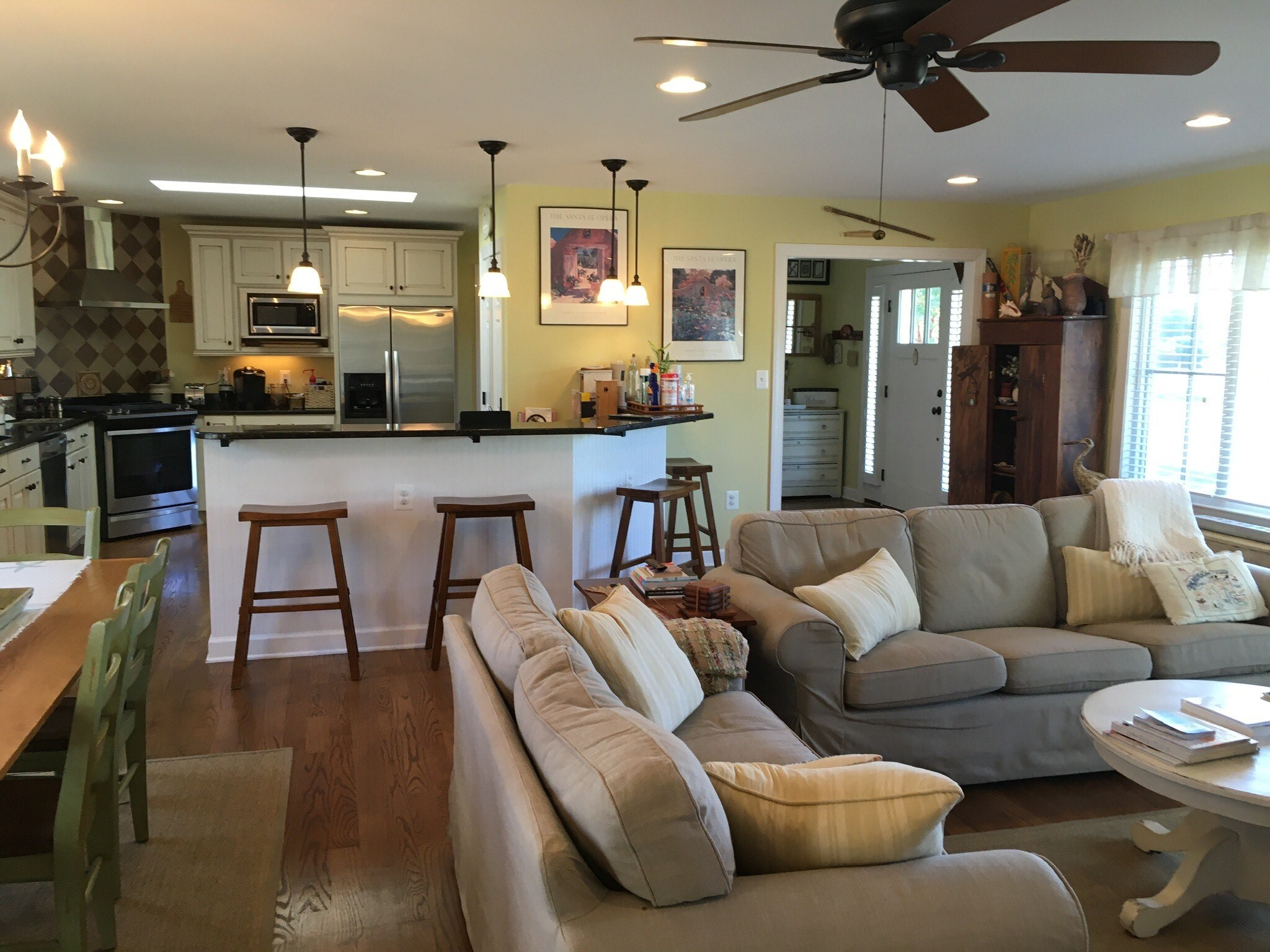Finally, we would all like to see you add some fabric or texture to add softness to your seating so it’s not all wooden (i.e. the stools and the dining room chairs). You have a good base here. Good luck, Jamie!