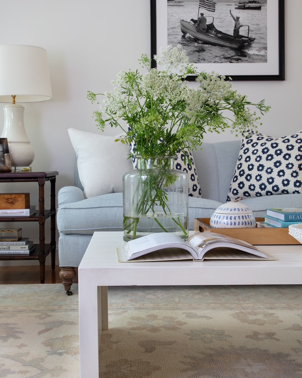This is the furniture of the current owner, I am planning to buy all new furniture (for the first time!) for my living room, which is extremely exciting… but I’m so nervous.  Do Ballard’s slip covered furniture hold their shape or would you recommend upholstered since there’s performance fabric now anyway?  I have three messy kids, but I am hoping they’ll mostly use the tv room!