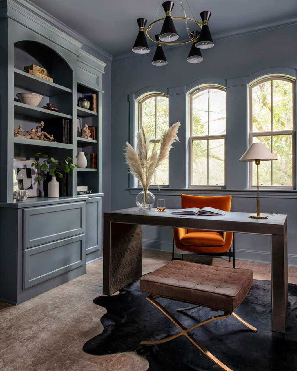 - How do I decorate the wall that juts out in the center once I get rid of the long table? (it’s currently navy blue but I would paint it to match the rest of the walls)