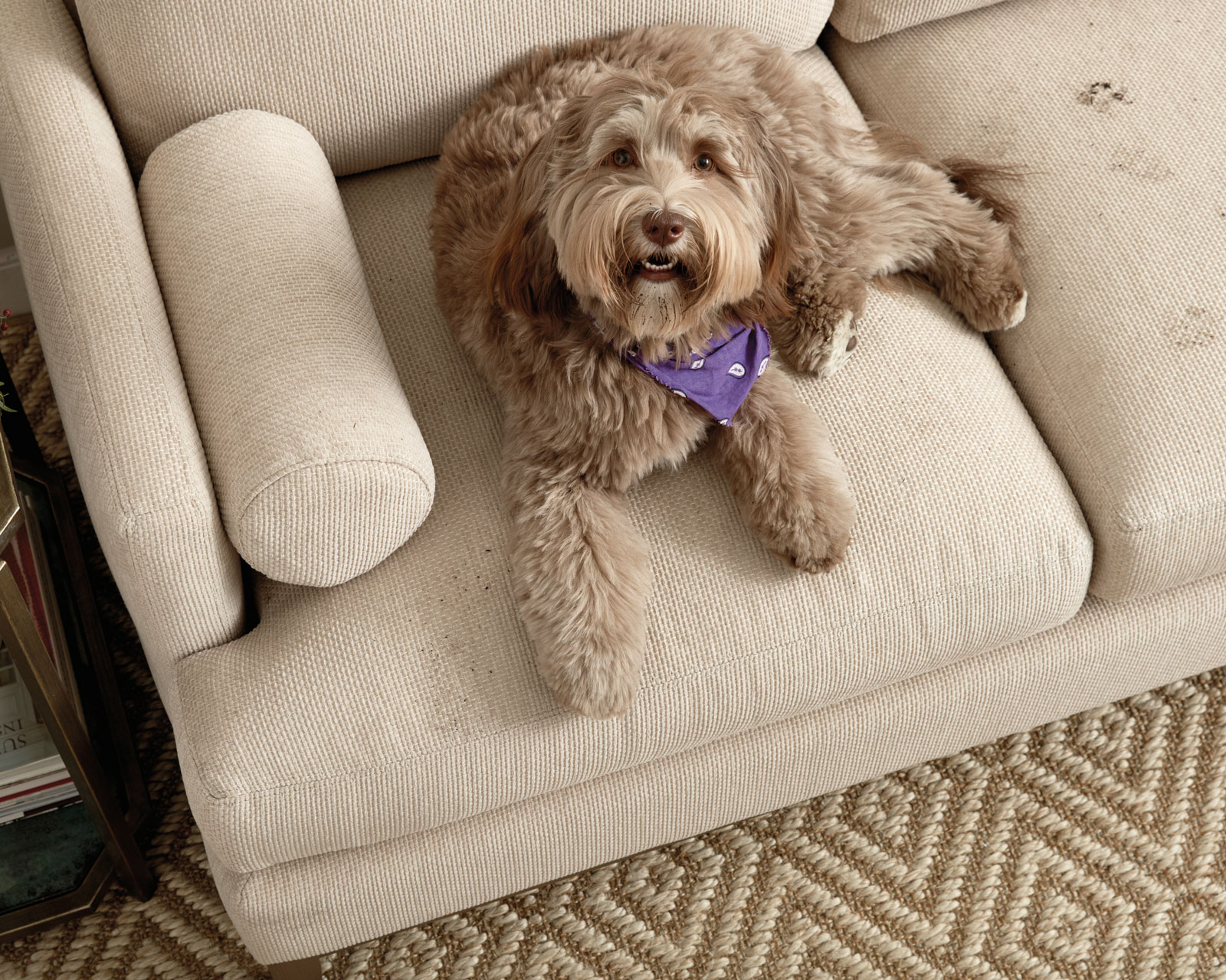 When it comes to shedding, microfiber, performance fabrics, and leather are the best fabrics to counter the endless fur battles. Consider choosing a sofa in a similar color as your pet mask hair, so lighter colored fabrics for your white Maltese, and darker shades for your black Labrador.