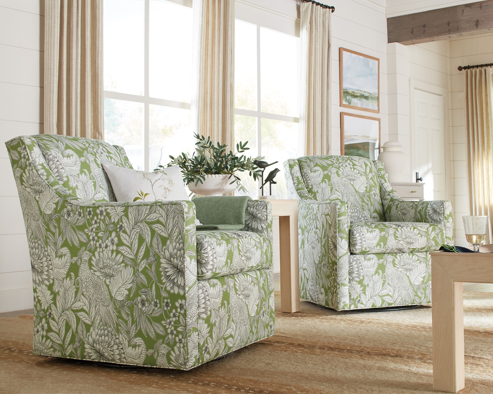 Ballard Designs comfy upholstered armchairs in rich, designer colors set the style in your living room, or any room. Place them in pairs to offer intimate conversation places or family “book club” reading nooks.