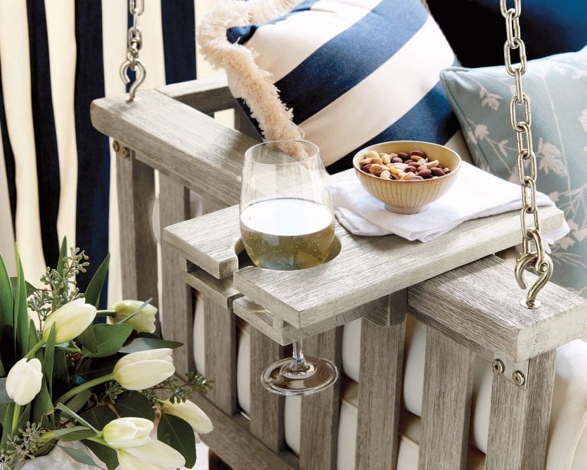 Of course every comfy spot needs a place for a drink, but a swing can be tricky! We definitely don’t want your wine to be out of reach, so we designed this handy tray table so your porch swing has a sidecar. Your favorite cocktail will never get left behind, and there’s even enough room for a snack.