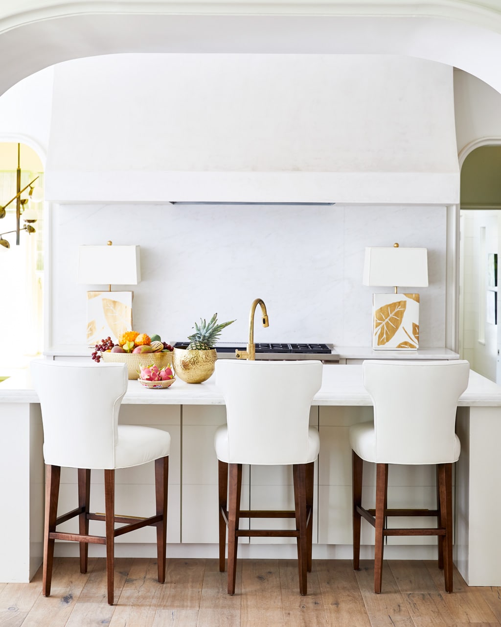 We have a Ballard buffet table on the wall beneath your arch mirror for barware, as well as a length console on the wall opposite the kitchen. With plenty of storage and serving space, I’m just not sure these outdated cabinets are the most functional and visually appealing solution for this space. We have two small boys and look forward to lots of entertaining once this space is complete!