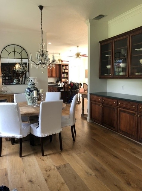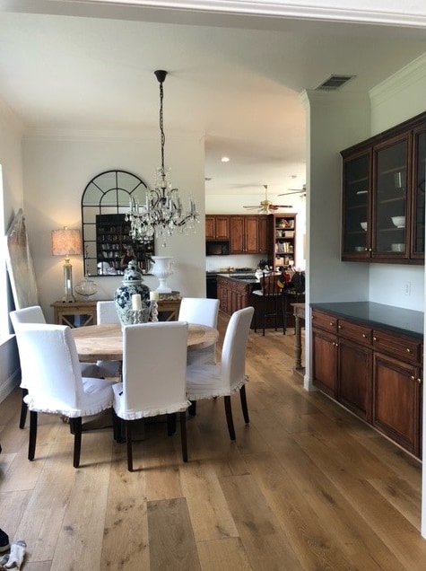 Here’s my dilemma: I’m struggling with the built-ins that you see in the dining room. Because my husband prefers to keep them in-tact, I’m considering using the kitchen quartzite on this counter space and extending the uppers to the ceiling. I’m also planning to paint the cabinet exterior one color and the interior something different, as well as adding glass shelving and interior cabinet lighting. I feel like this is a fine way to update what’s there, but I’d love your thoughts on more creative solutions for this space!