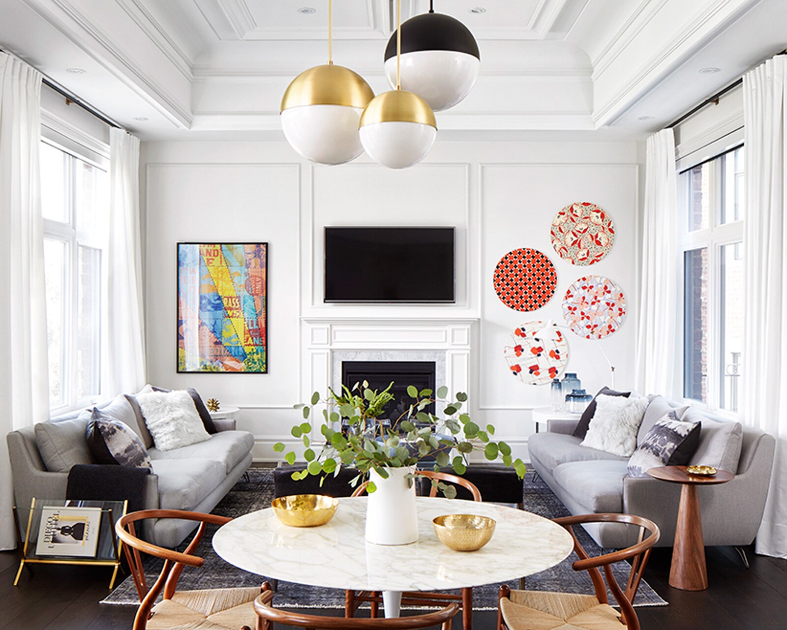In terms of furniture, you want it to support the function you want the room to accomplish. Since we aren’t sure of that from your email, our rule is to use the largest furniture possible to make the room cozy and functional. And be sure to consider flexible seating for visitors if you plan to entertain often. I always approach with a plan of, “What do I want this room to do?” Keeping in mind how you actually live.