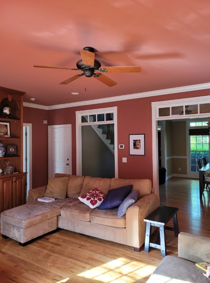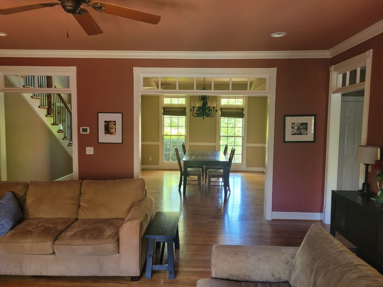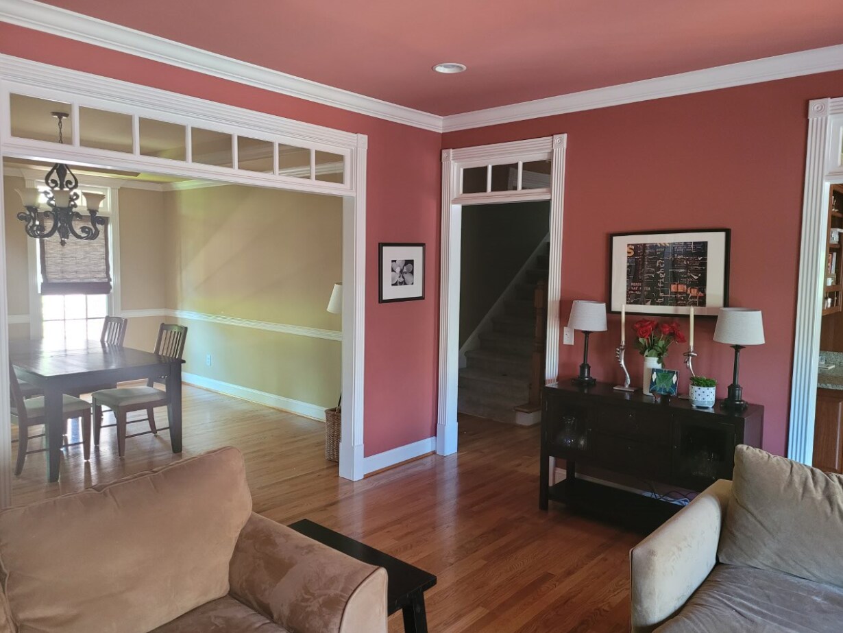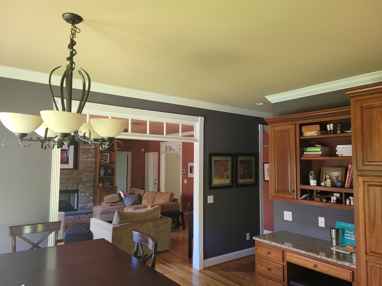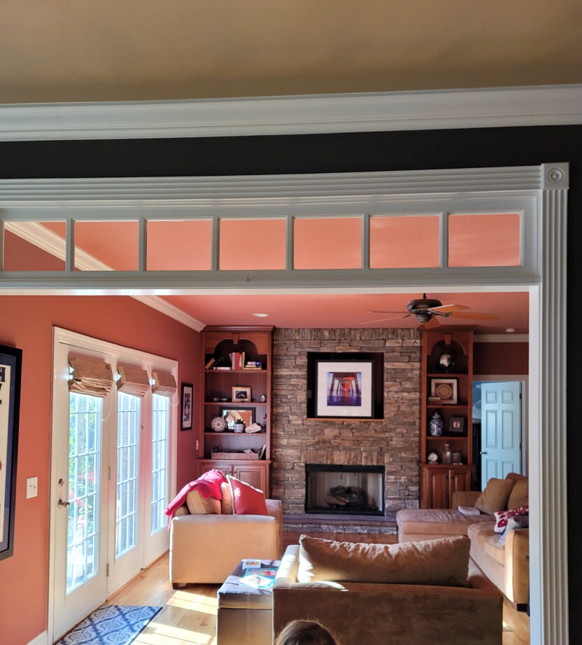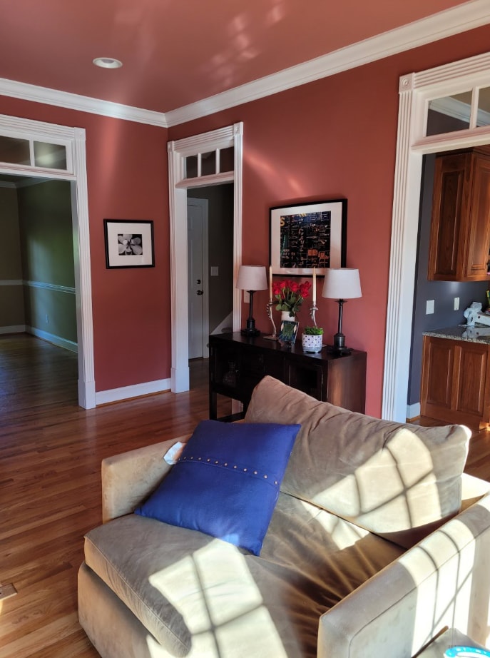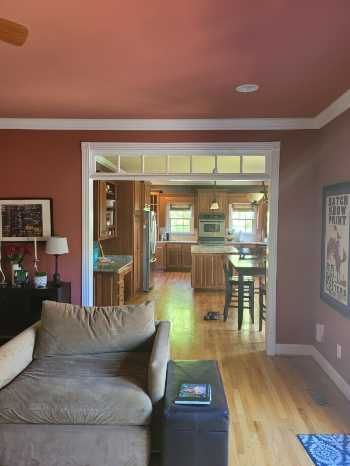So we moved into this great house this summer. While not a completely open concept floorplan, from the living room, you easily see the kitchen, dining room and front hall. The prior owners painted each room a different color…and the ceilings different colors from the walls in the kitchen and LR.