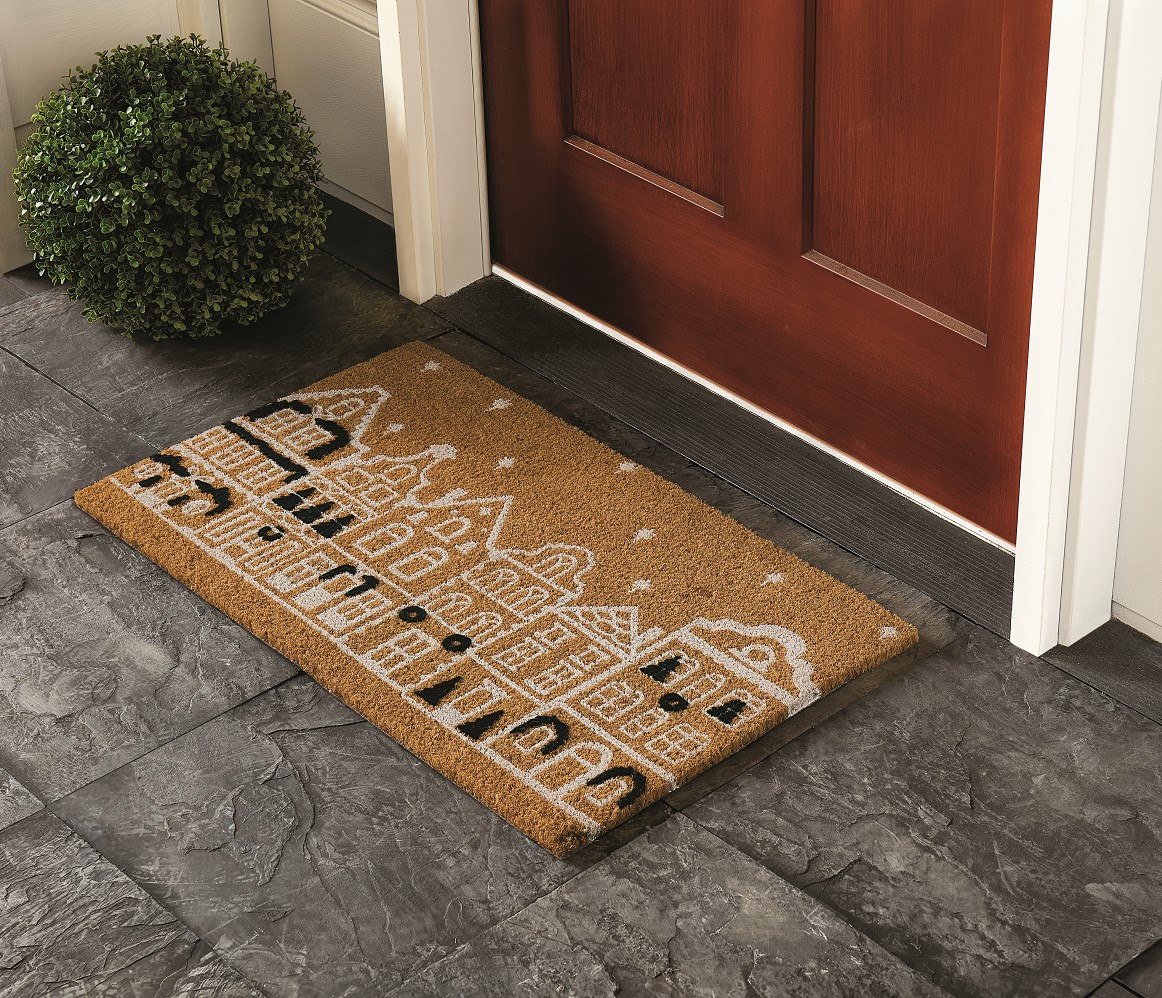 “Outdoor mats are a fun piece to update and switch out based on the season,” says designer Suzanne Kasler. This holiday, set out a doormat that’s equal parts festive and functional. Take the holiday spirit one step further and match your doormat with gift wrap and an indoor pillow.