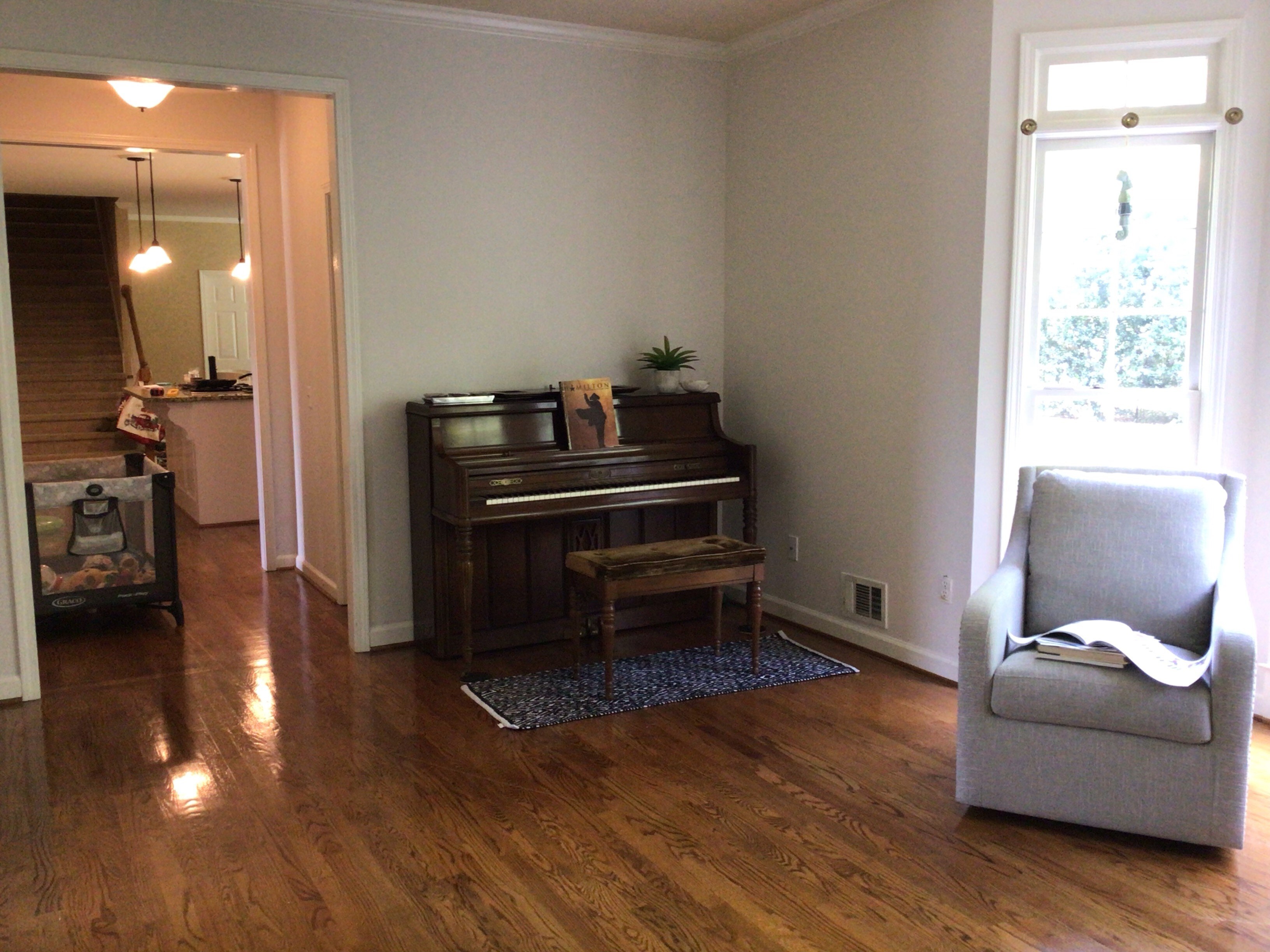 Our new family room is a lovely space. The room will serve three main functions. First, a true family room. A place where my husband and I can talk at night, we can play games, and it’s will probably be our Christmas tree room. We have our tv in another room, so we do not need to plan for that. Next, my husband is a priest, and it is our hope that this house will be used regularly for hospitality and regular entertaining of parishioners, neighbors, and family. We want a comfortable, livable place for people to gather. Finally, it will also serve as our music room. We have an heirloom piano and several other instruments that we enjoy playing and listening to.
