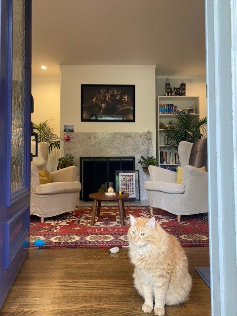 Since the house was built in 1934, I’m aiming for a blend of Hollywood Regency (me) & Mid-century Modern (husband). We both love camp, and want this room to be a fun place for socializing and cocktail parties.