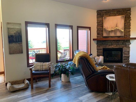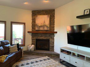 I am open to any and all suggestions.  My husband and I decided not to rip out the corner fireplace due to cost.  So I am stuck with the corner fireplace. And I am open to replacing the ceiling fan.