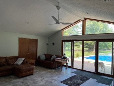 • The space is 20’x22’, and is part of an open floor plan. Our kitchen opens to this living space on one side, and double sliding glass doors on the other.