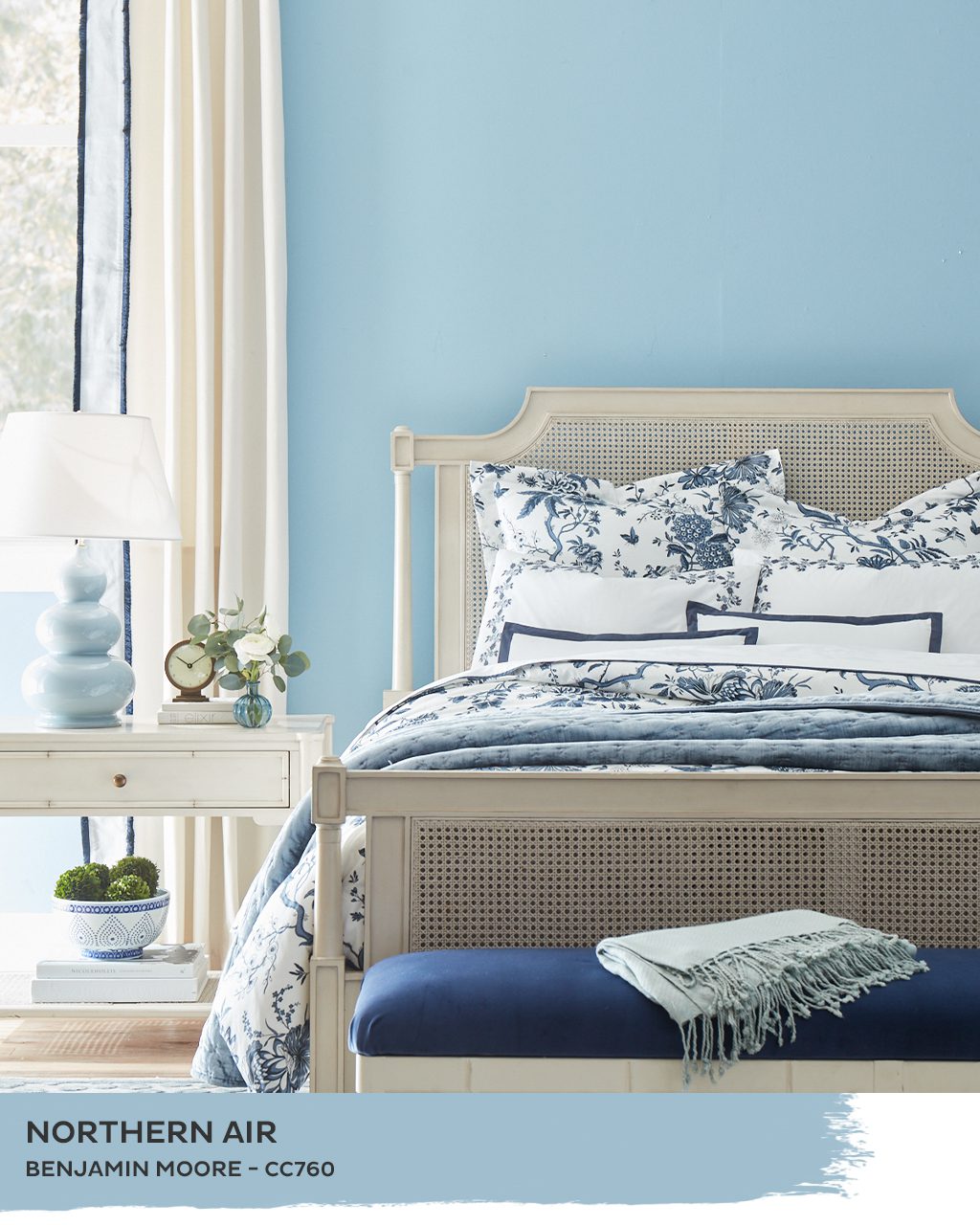 Breathe new air into your living or bedroom with Norther Air from Benjamin Moore. This refreshing shade of blue is easy on the eyes and pairs perfectly with gold accents, bold neutrals, and indoor greenery.
