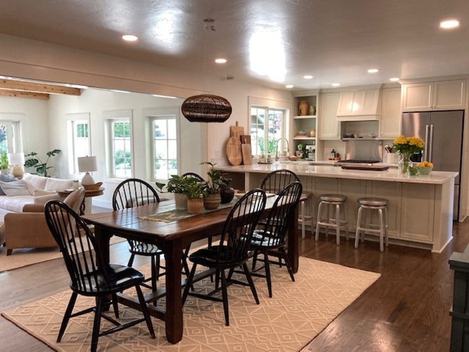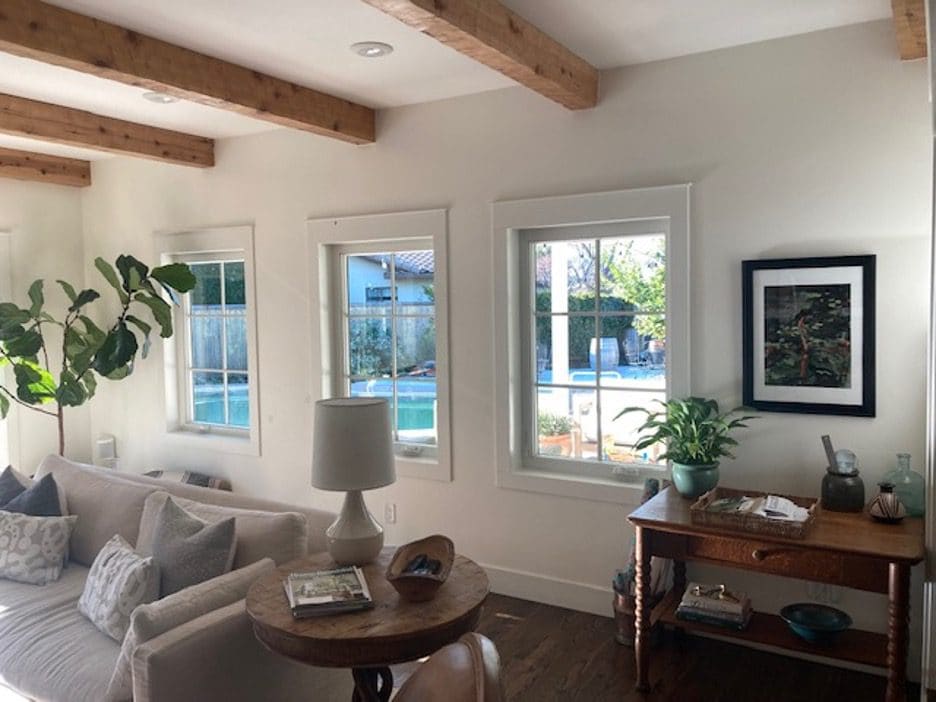My question is: if I install drapes for the large french slider, must I also install them on the adjacent wall that has the three casement windows to make it look balanced and put together? The three windows do not receive much light as they are north facing and share a wall with an outdoor covered patio area. If I should install drapes for these windows, do they each need their own rod/panels or could I act as if they are one large unit and have a long rod with two panels? Lastly, how high should the rod/s be hung? I have found a dozen answers to this question on the web but value your opinion. I absolutely love natural light but the hot afternoon sun in California can be brutal, and the comfort of my family is the most important design consideration I need to make (in this scenario at least).