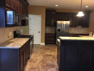 We need your advice! We have considered hardwood or wood laminate floors throughout, but don’t know what color to choose due to our dark cabinets in the kitchen. We like the earthy colors of our walls & planned to keep them as is.