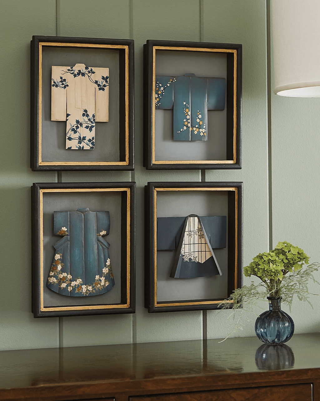A few standout shadow boxes and canvas paintings  (below) are currently available at Ballard Designs under $100, but we especially love using three-dimensional objects like wall baskets (above) for their chic aesthetic and infinite decorative possibilities.