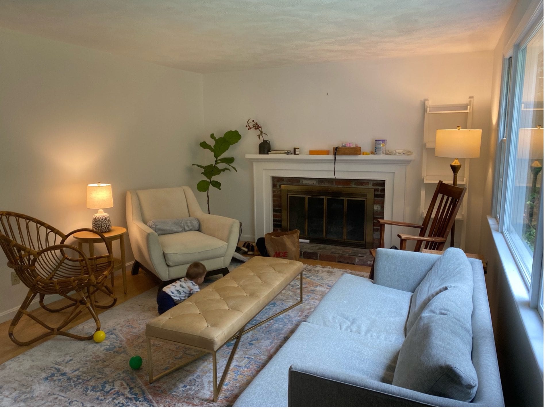 We just bought our first home (still in the process of moving), and now all of my great ideas feel paralyzed by reality. 🙂 I have so many decorating dilemmas that I want to ask y’all about, but I will start with our funny small living room. Our house is a 1977 Cape Cod, and it’s small. Our living room is 15’10” x 11’6”. It has a fireplace at one end, and a single large picture window. The primary dilemma is that if I center our small apartment sofa under the picture window, then it is not centered on the opposing wall. The edge of the picture window actually extends beyond the opposing wall into its hallway. Ideally we would like to arrange this room with two sofas facing each other, and I would like to get a larger sized 87” leather chesterfield sofa for the wall now that we aren’t apartment dwellers.