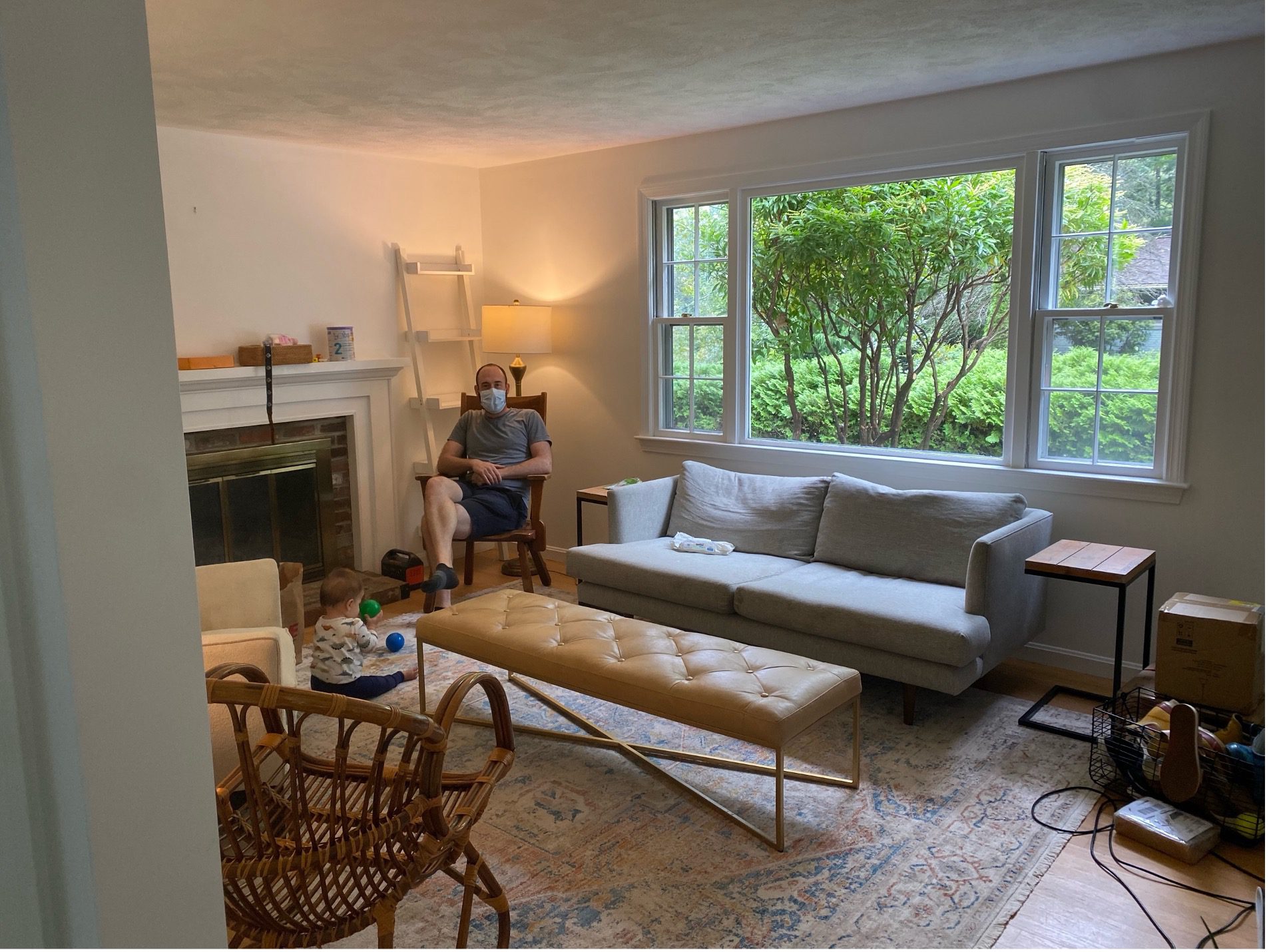 The only thing in the picture is that we want to stay is the small sofa, and ideally the ottoman that we are using as a coffee table. Please pardon the mess in the photos as these were hastily taken in the middle of moving today.